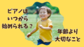 年齢だけで決めず、子どもの成長や気持ちを大切にしたい親御さんへ。レッスン前に身につけておきたいことや、ご家庭でできる音楽との関わり方を、ピアノ講師の視点でお伝えします。~ピアノは何歳から始めるのがいい?